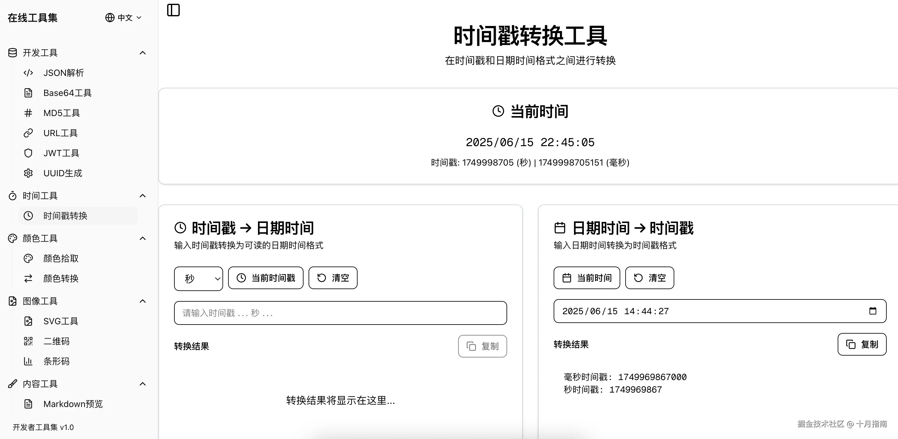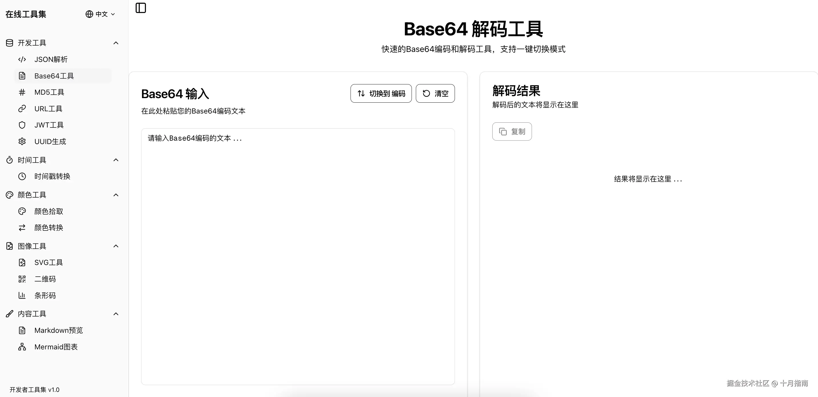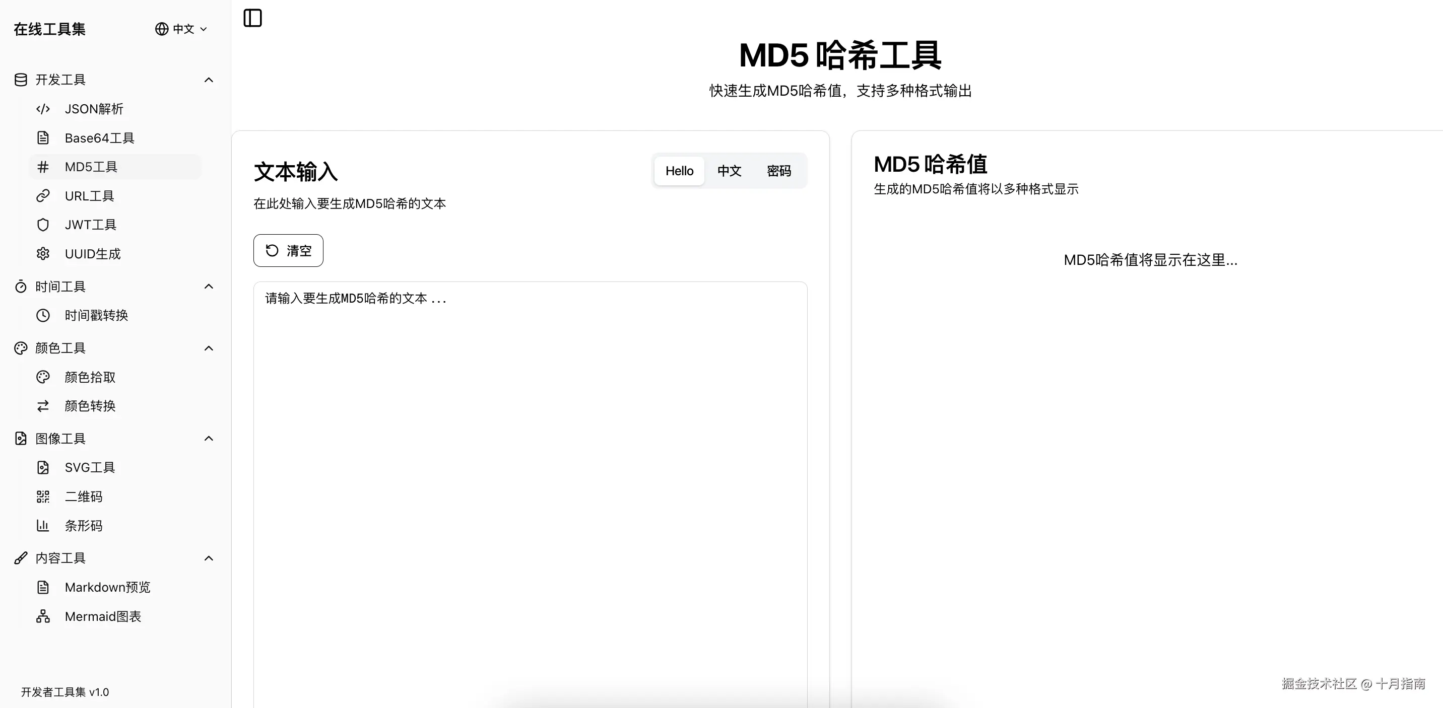 项目的初始想法很简单:把我自己常用的开发工具打造一个集多种实用工具于一身的网站,比如开发工具、文本处理、数据转换、颜色工具等。我的目标是让这个网站功能强大,同时界面友好、操作直观。其实在 AI 如此强大之前我已经开发过一个工具网站,但是代码需要完全自己编写,效率极低同时由于没有设计稿,最初出来的效果也不尽如人意,如下图: