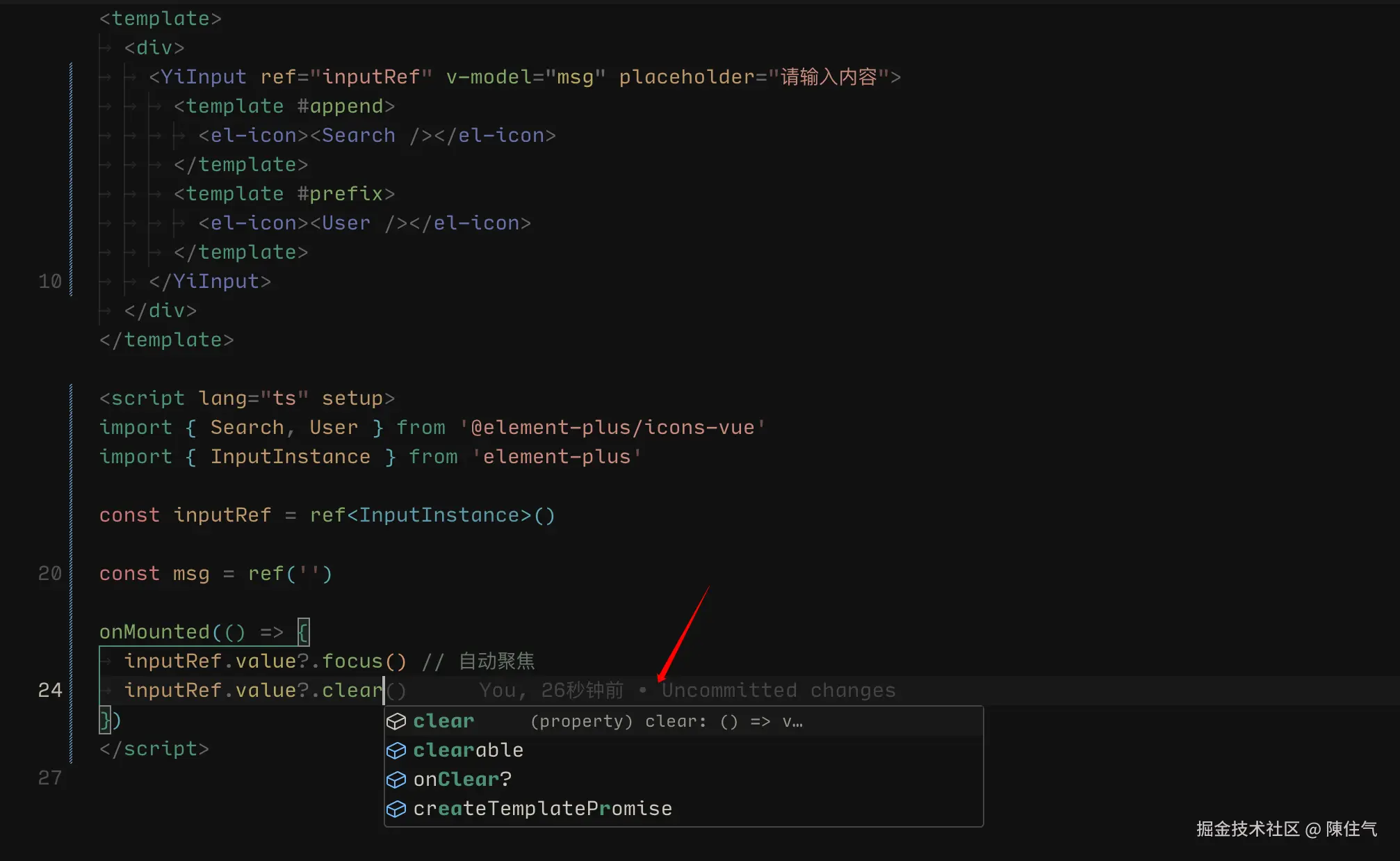 <YiInput ref="inputRef" v-model="msg" placeholder="请输入内容">