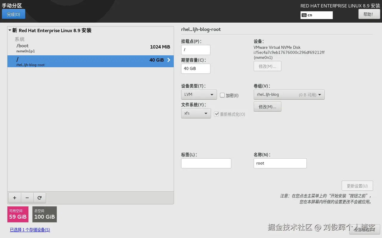 - “/”分区大小为40GiB