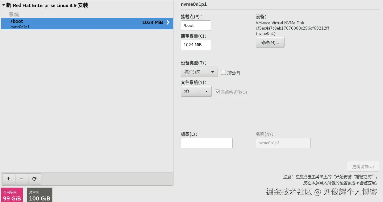 - /boot分区大小为1GiB