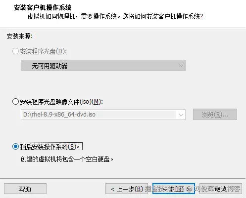 - 选中“稍后安装操作系统”单选按钮,然后单击“下一步”按钮,如下图所示。