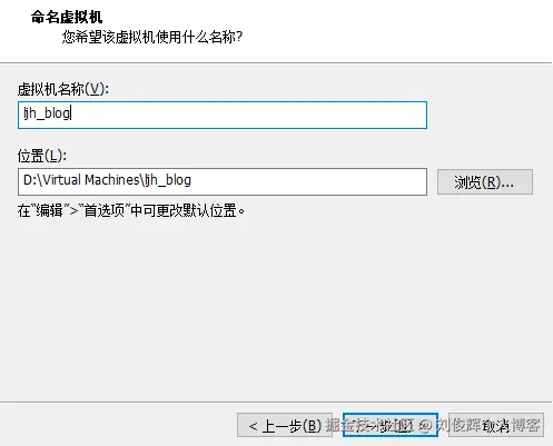 - 填写“虚拟机名称”字段,并在选择安装位置之后单击“下一步”按钮,如下图所示。