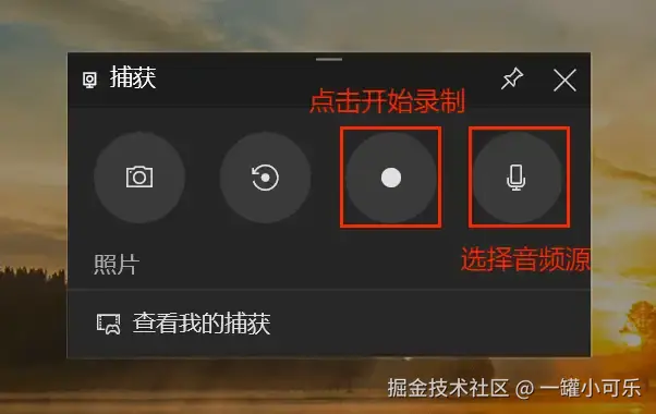 步骤1:按下录制快捷键 “Win+G” 唤出Xbox,然后在上方工具栏选择 “捕获” 。