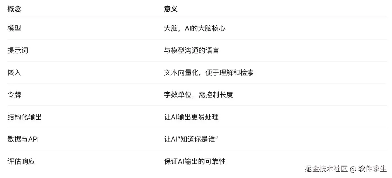 咱们复盘一下,用这七个核心概念,就能掌握 Spring AI 的基本玩法: