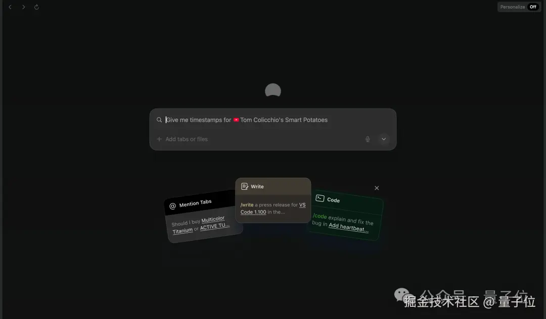 其杀手级功能是自动从标签页获取上下文,无需复制粘贴、无需设置上下文,Dia 会自动识别。