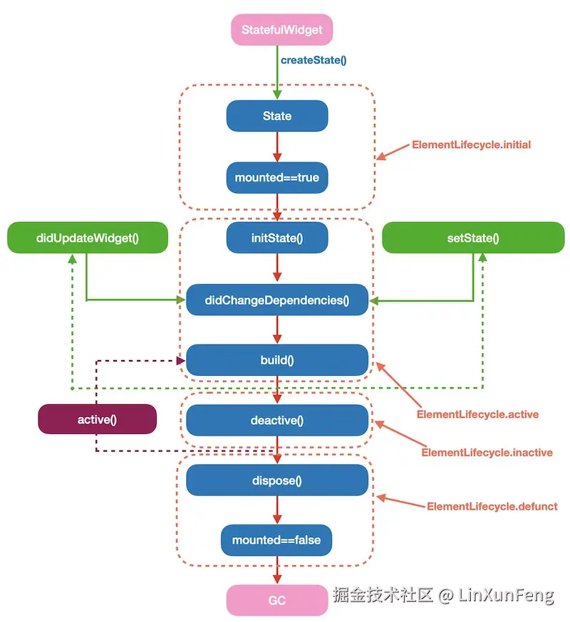 方式三看起来挺简单好用的,但是,它所使用的 BuildContext 的生命周期必须是 .active,具体是什么意思?这里给出一张图就明白了