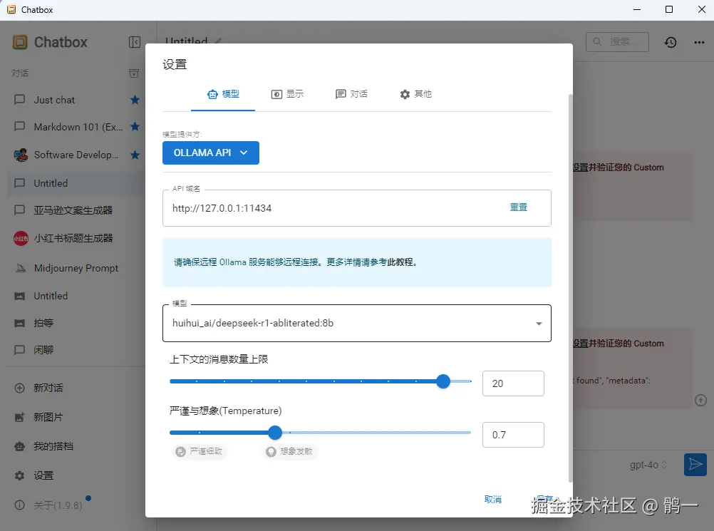 对接本地模型需要Ollama,建议搭配chatbox使用