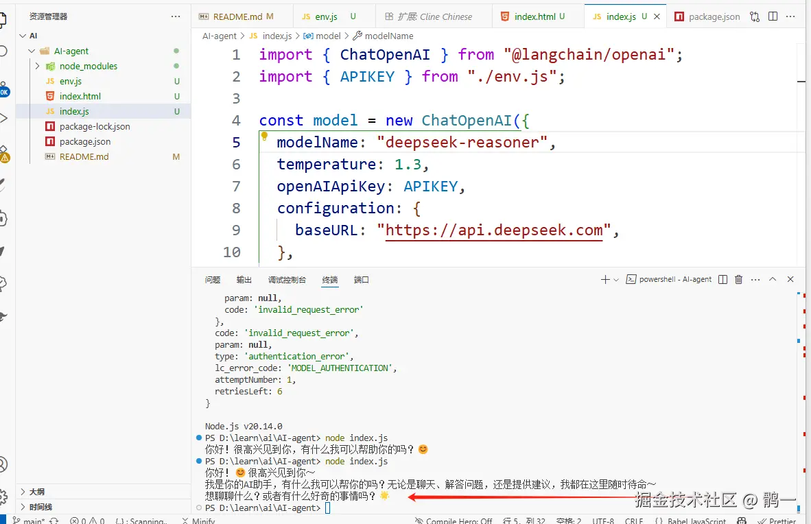 baseURL: 'https://api.deepseek.com' // 模型地址