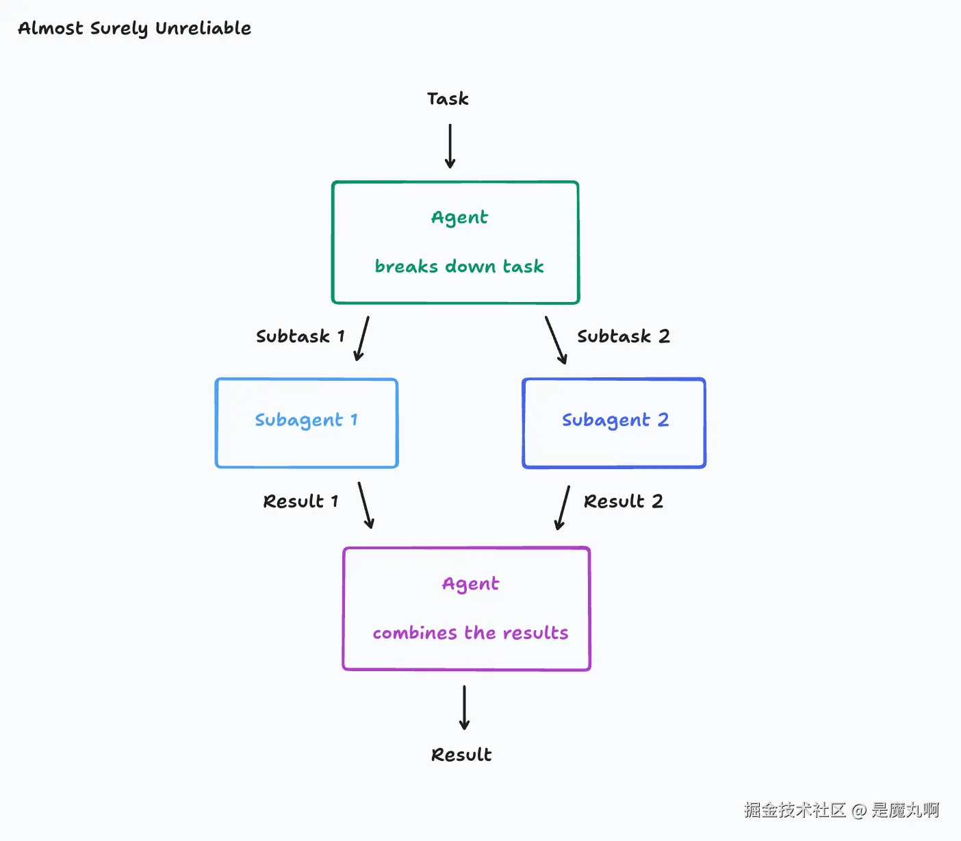 这可能看起来很做作,但大多数现实世界的任务都有许多层次的细微差别,所有这些都有被误解的潜力。你可能认为一个简单的解决方案就是将原始任务作为上下文也复制给子智能体。这样,它们就不会误解它们的子任务。但请记住,在真正的生产系统中,对话很可能是多轮的,Agent 可能必须进行一些工具调用来决定如何分解任务,任何数量的细节都可能对任务的解释产生后果。