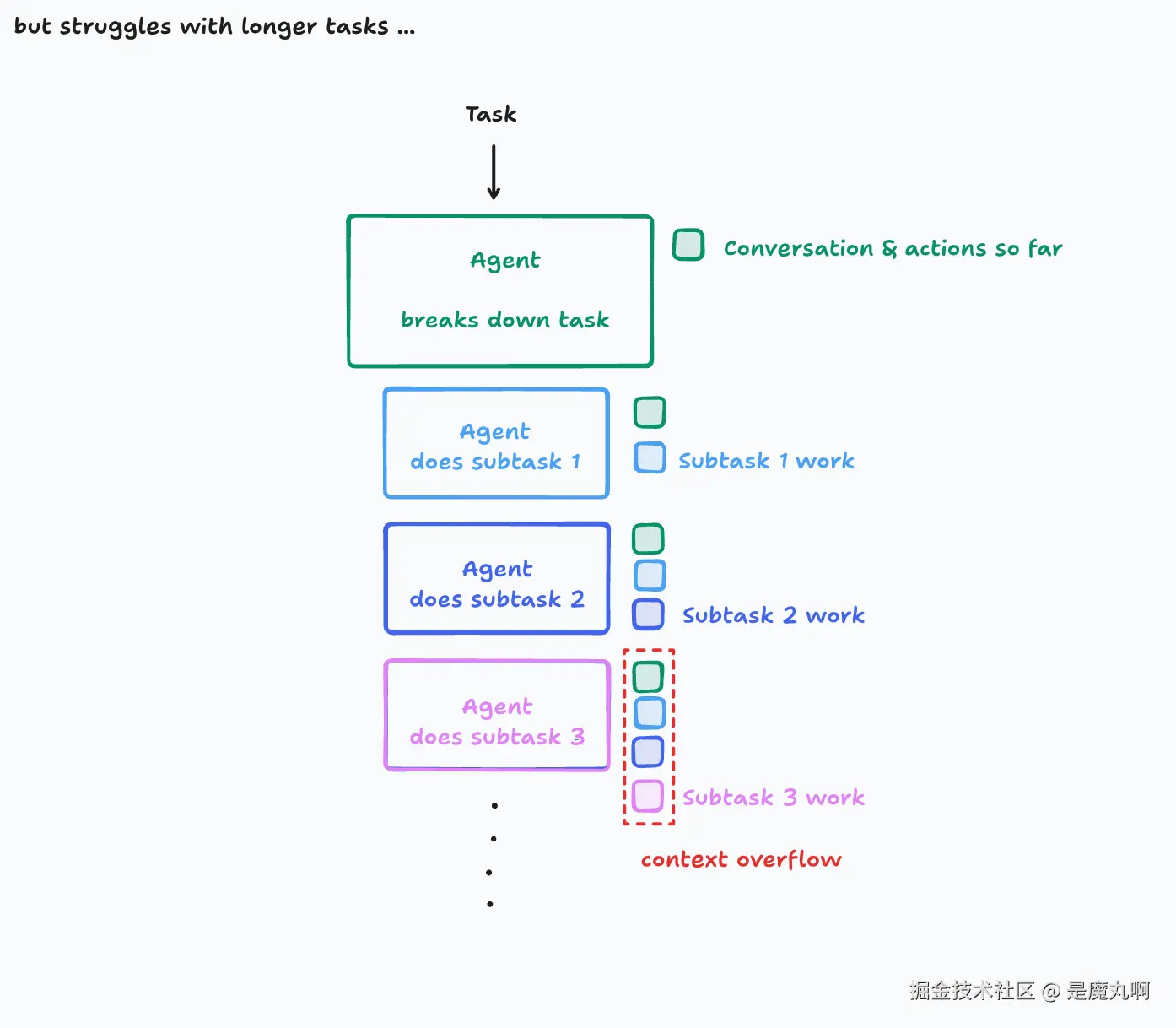 在这里,上下文是连续的。然而,对于有如此多子部分的非常大的任务,你可能会遇到上下文窗口开始溢出的问题。