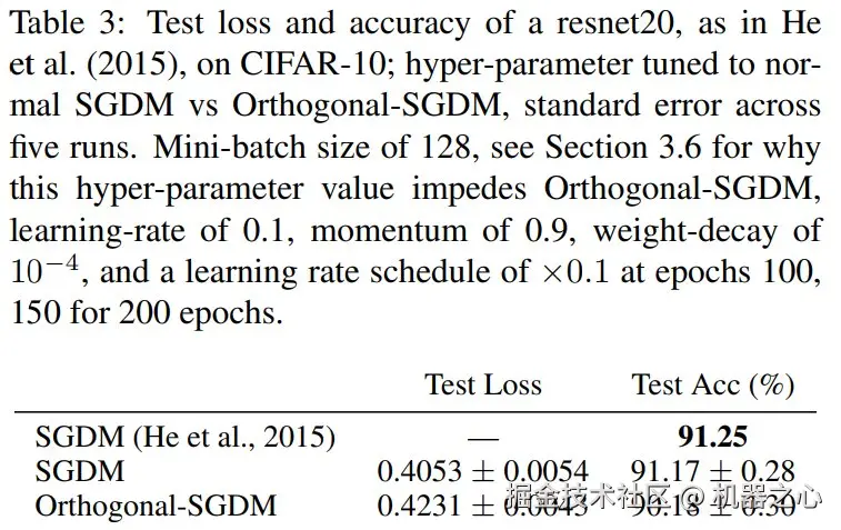 遗憾的是,Tuddenham 等人(2022)在其最佳实验配置(表 3)中报告,他们的方法表现不及精心调参的标准 SGD-Momentum。