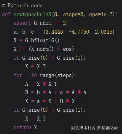 其中,NewtonSchulz5 定义为以下牛顿 - 舒尔茨矩阵迭代: