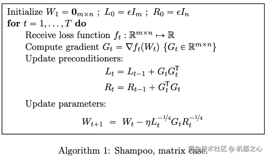 Shampoo 优化器定义如下: