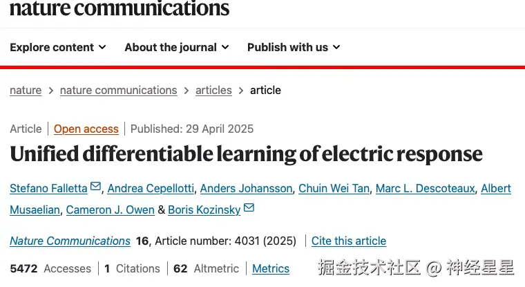 相关研究成果以「Unified differentiable learning of electric response」为题,已发表于国际权威期刊 Nature Communications 。