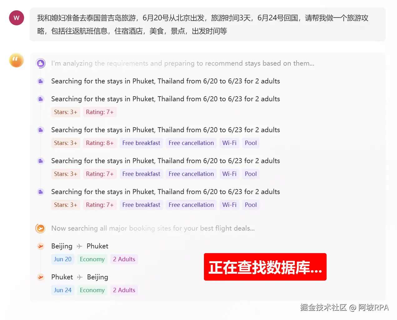 开始查找数据库,从查询数据的这个过程可以看出,iMeanAI Coyage是一个多智能体协同工作的系统,