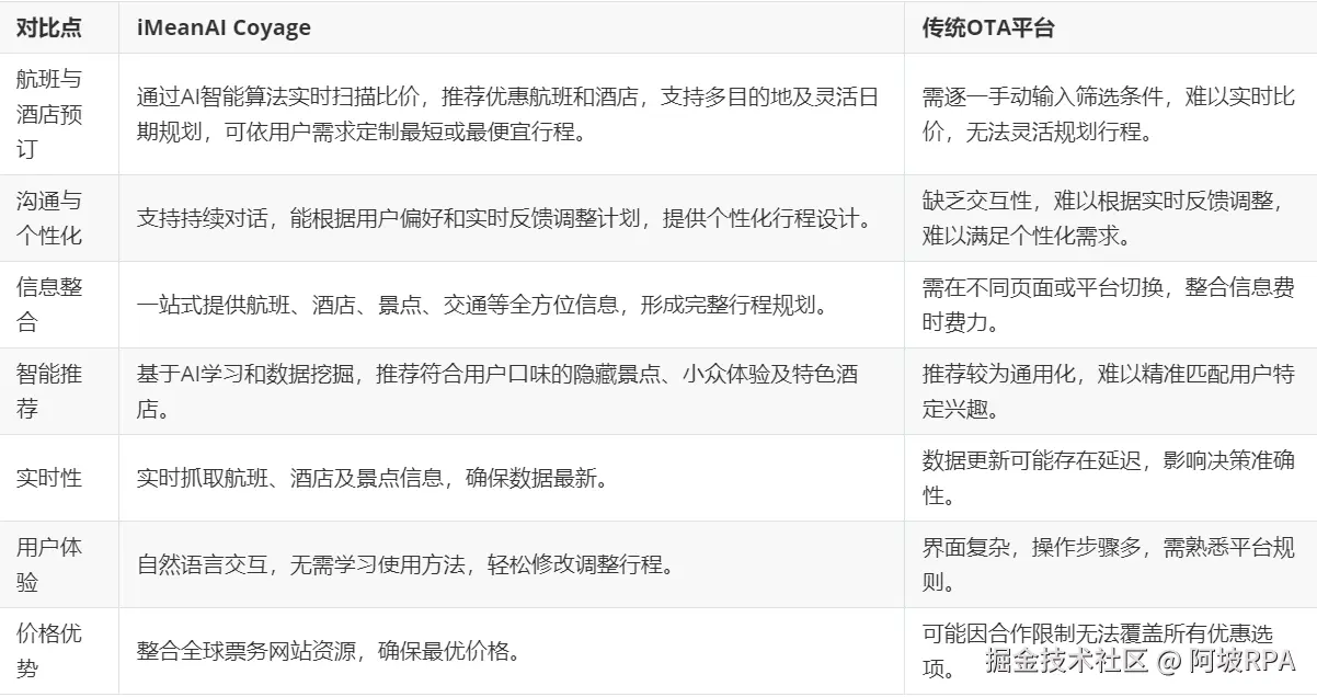 整个体验下来,我的感受就是:这iMeanAI Coyage不像普通的语言模型,它更像是一个真正能思考、会学习,还有实际操作能力来帮用户规划旅行的产品。所有信息——机票、酒店、景点等,都是实时且可操作的,而不是只给一个看似合理却无法实施的计划。