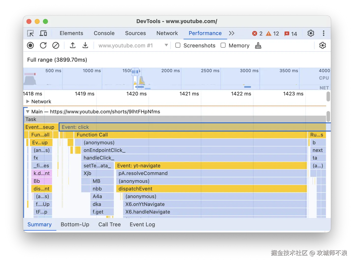 - Chrome Performance面板 分析主线程任务耗时,查看