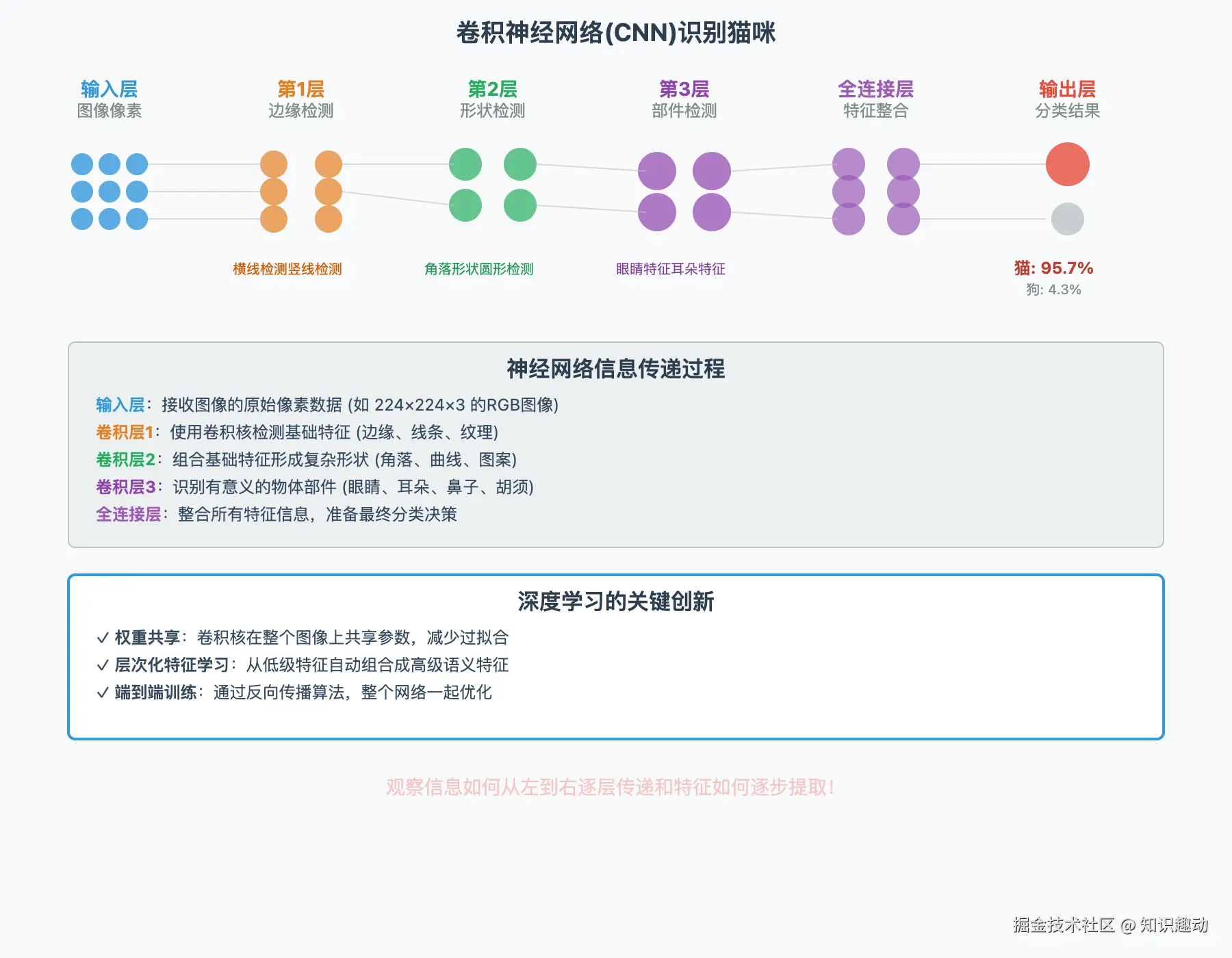 - 程序员解放了:不需要手工设计特征,机器自己学会看什么