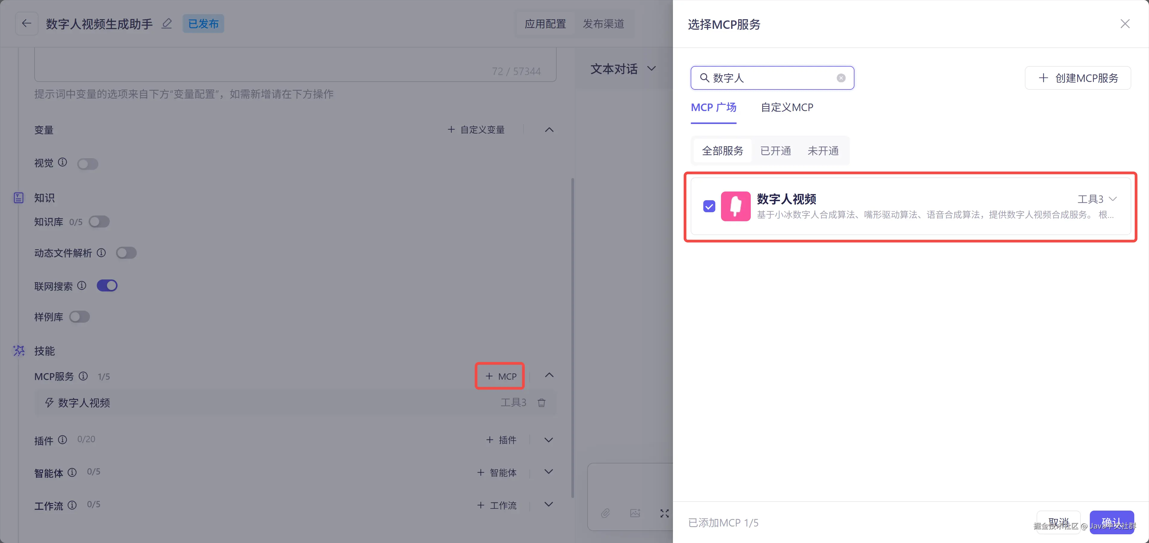 5.添加数字人工具