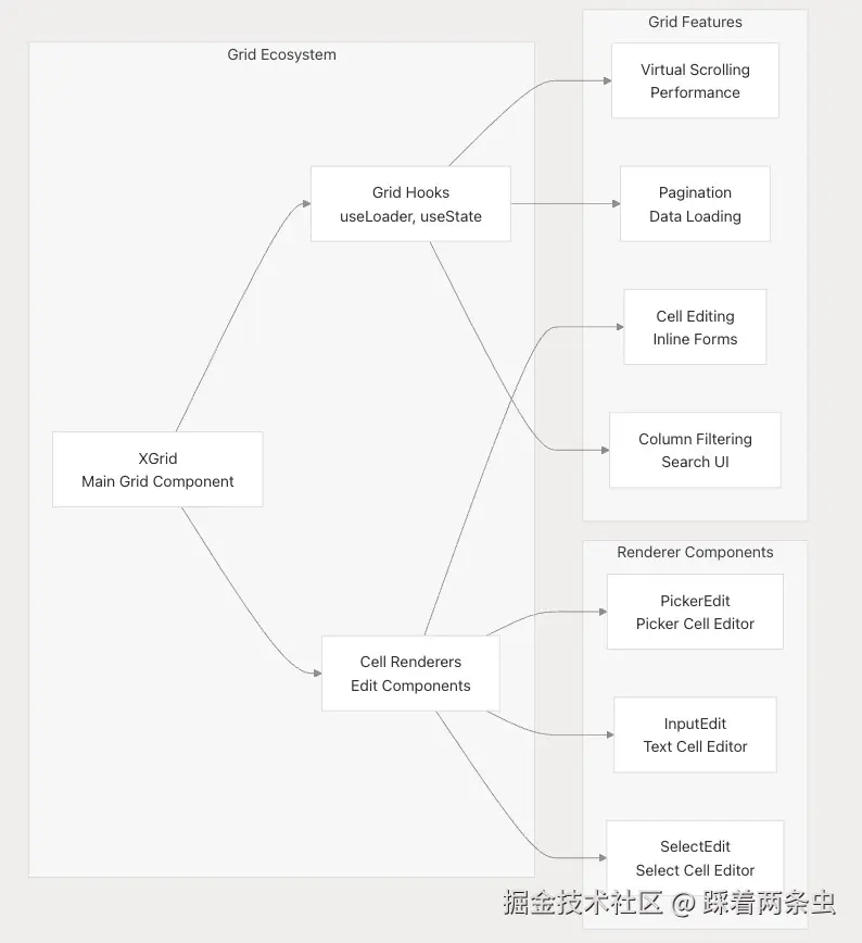XPicker 和 XGrid 等组件使用加载器函数实现标准化的数据加载模式: