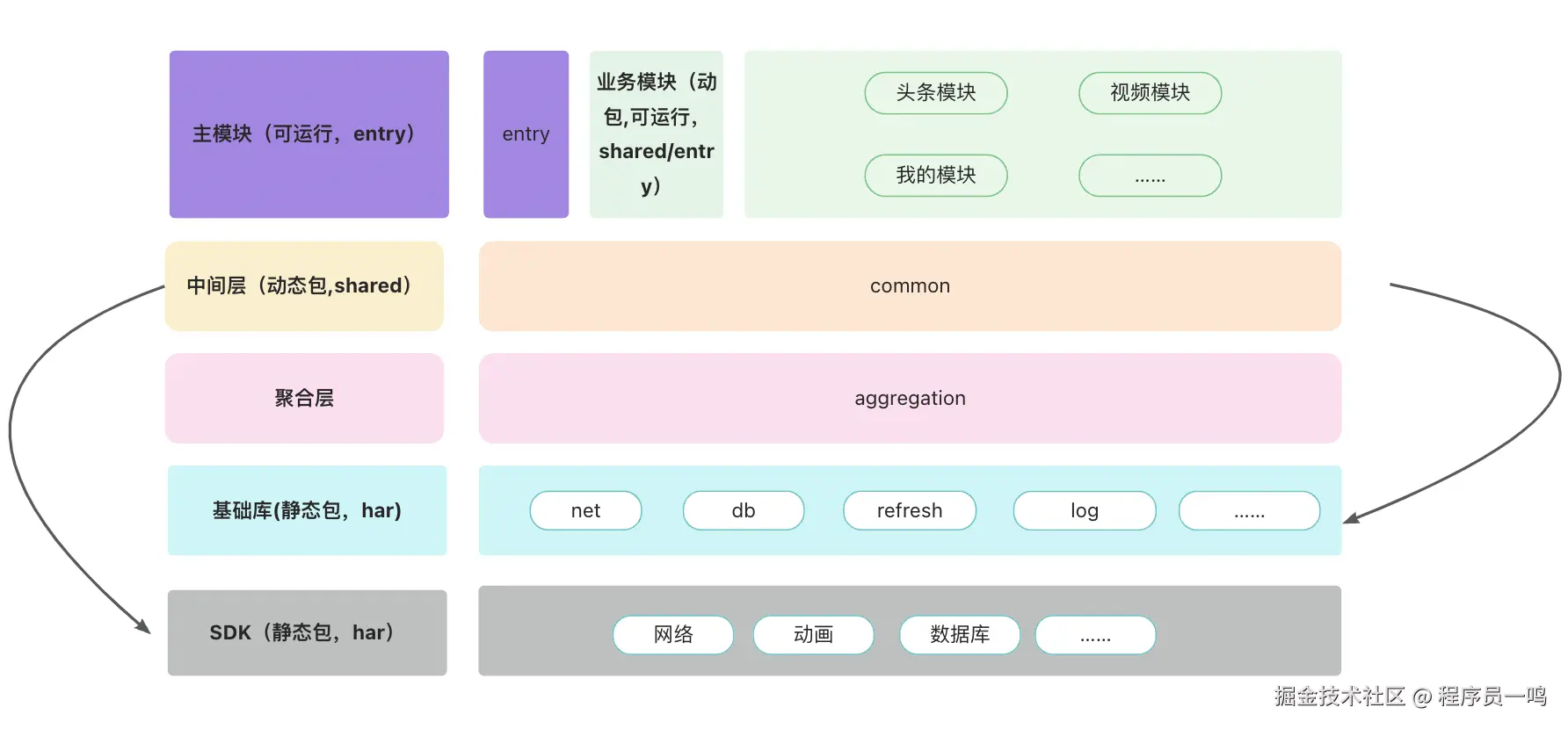 资讯项目,相对来说,还是比较的简单,我们可以把代码统一放到主模块中实现,这样做一点问题没有,但是,为了结合市场的导向,以及未来的技术发展,我们这里依然采用组件化的形式进行开发,关于鸿蒙端如何实现组件化,之前陆陆续续已经分享了多篇文章,这里不在赘述,为什么采用组件化?这里简单在陈述一下:最大的原因莫过于解耦,使其功能模块之间相互独立,既方便后续的功能复用,也能团队协作之间明细各自的任务开发,减少一定的冲突;除此之外还有一个最突出的能力,那就是减少编译时间,提高运行测试效率。