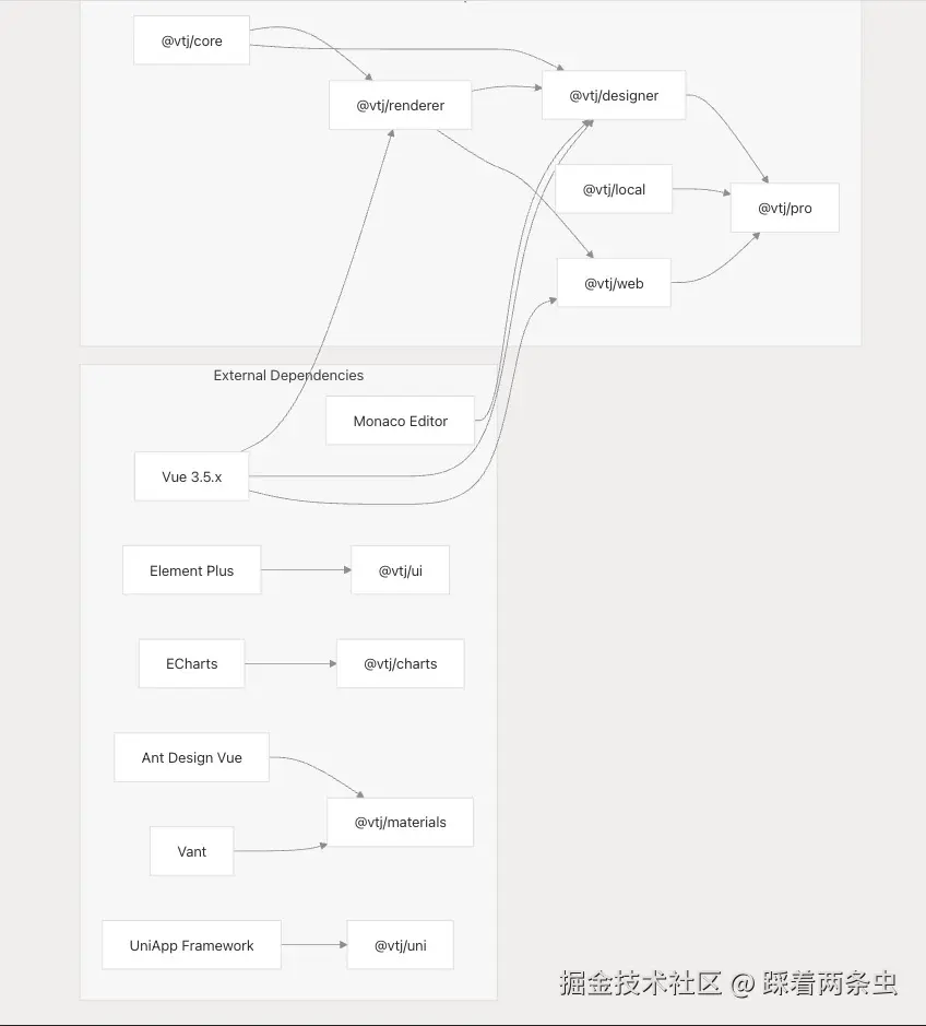 | @vtj/designer | 0.12.40 | 可视化设计环境 | @vtj/核心、@vtj/渲染器、@vtj/UI、monaco-editor |