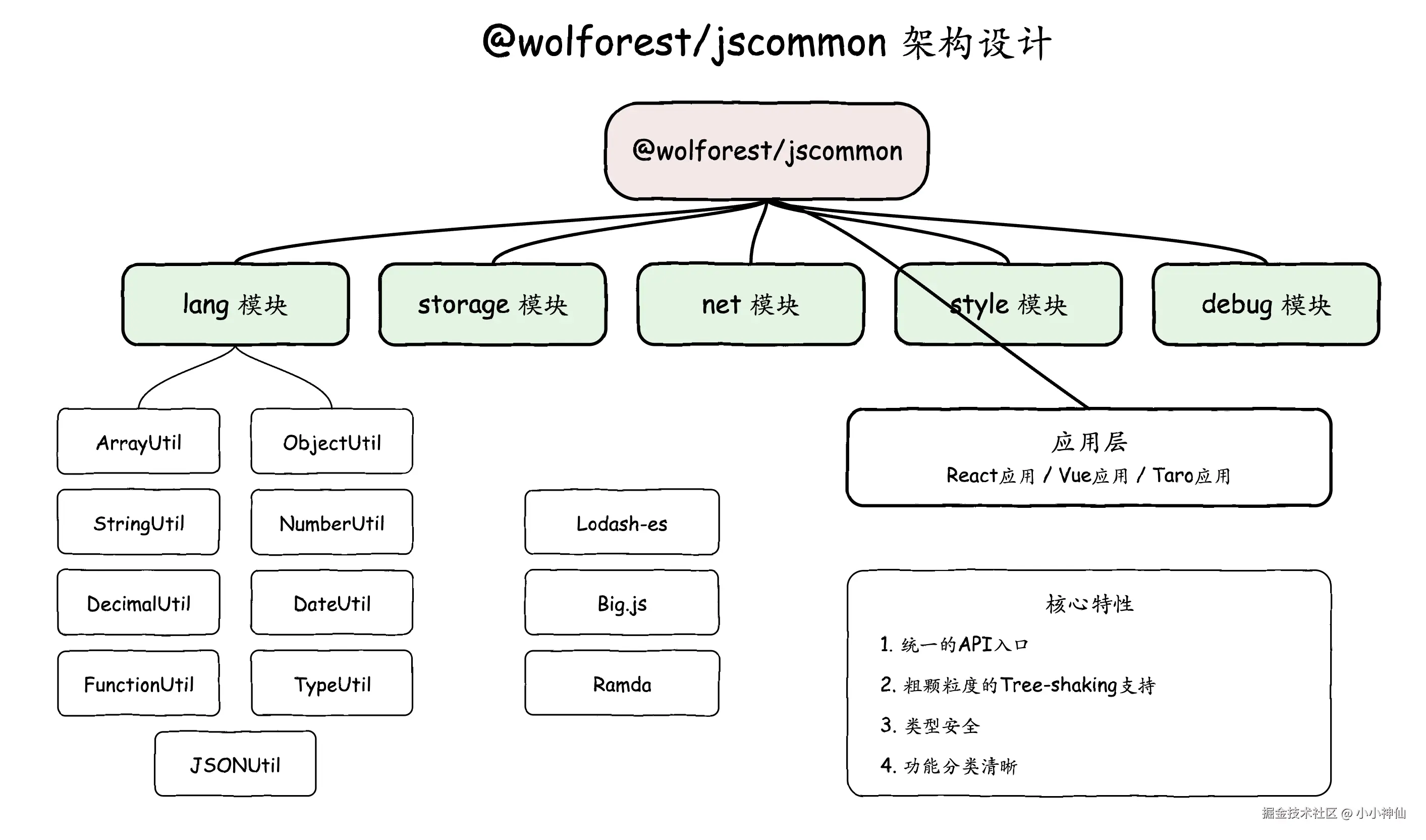 通过这种设计,@wolforest/jscommon 实现了: