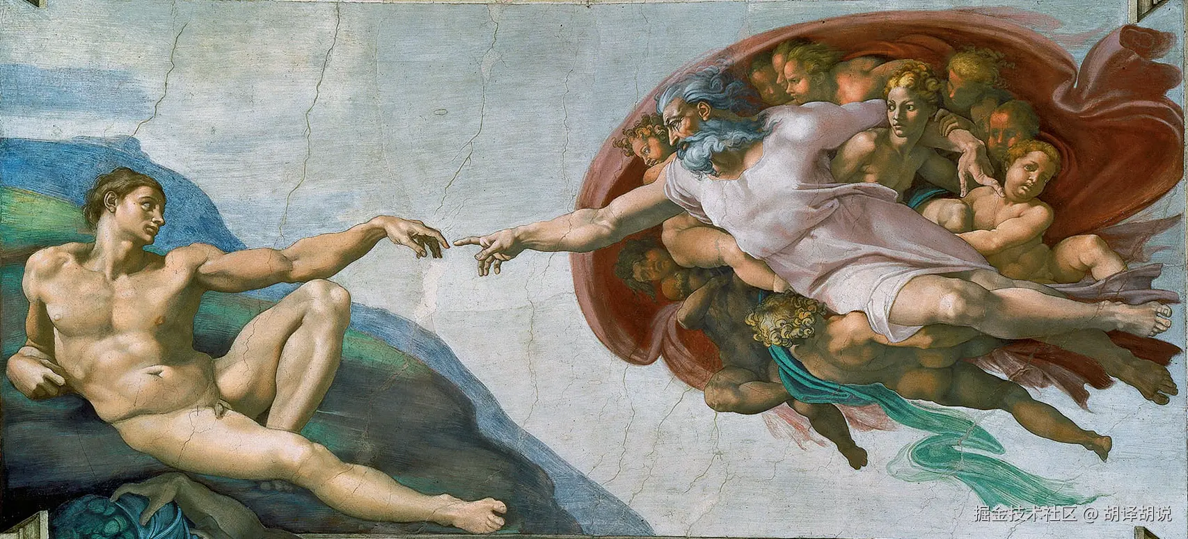 看到这幅画的时候,我脑中突然冒出一个念头:*nix 系统里的 touch 命令,会不会也是受此启发?在操作系统的世界里,用户就是数字造物主,只需手指一点,“touch”一下,文件便无中生有,颇有几分神性。