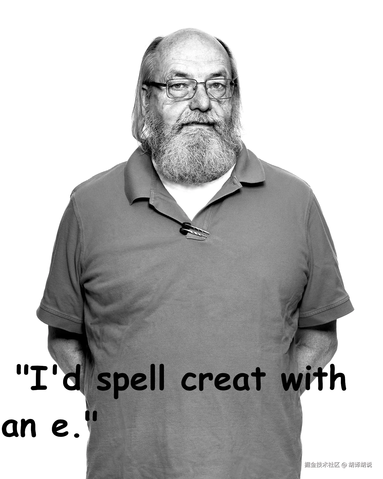 Ken 幽默地回答说:“我会把 creat 拼成带 e 的 create”。