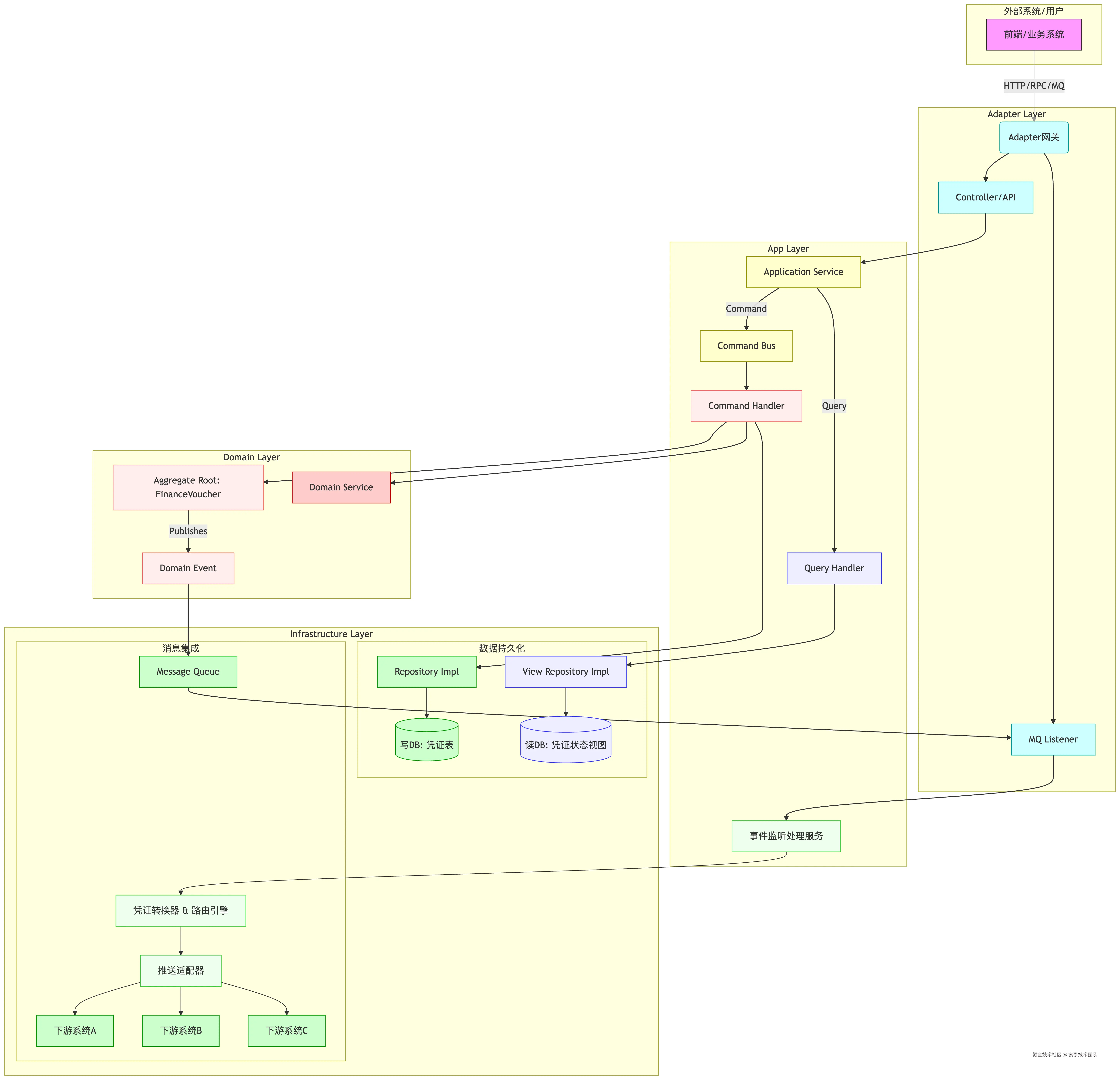 三、架构蓝图:COLA+CQRS如何落地财务凭证推送