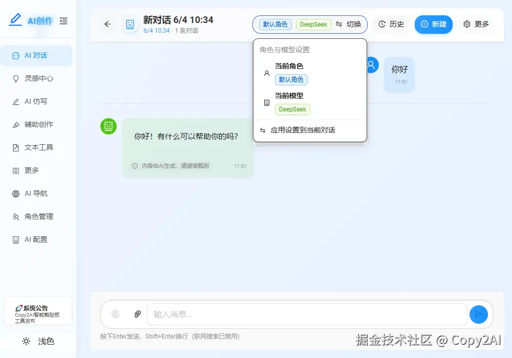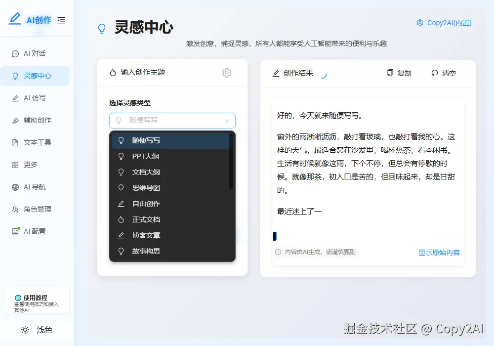Copy2AI智能创作助手,是你的专属写作伙伴,无论是灵感激发、内容优化,还是多场景创作,都能轻松搞定。完全免费,隐私安全,支持接入本地AI大语言模型,操作简单,快来试试吧!