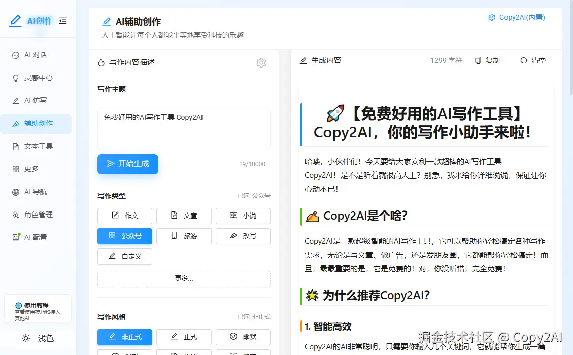 🌟 Copy2AI智能创作助手,在你的电脑上搭建一个专属的AI写作伙伴,让创作变得简单又高效,灵感随时激发!完全免费的AI写作工具,没有使用次数限制,高度自定义!!