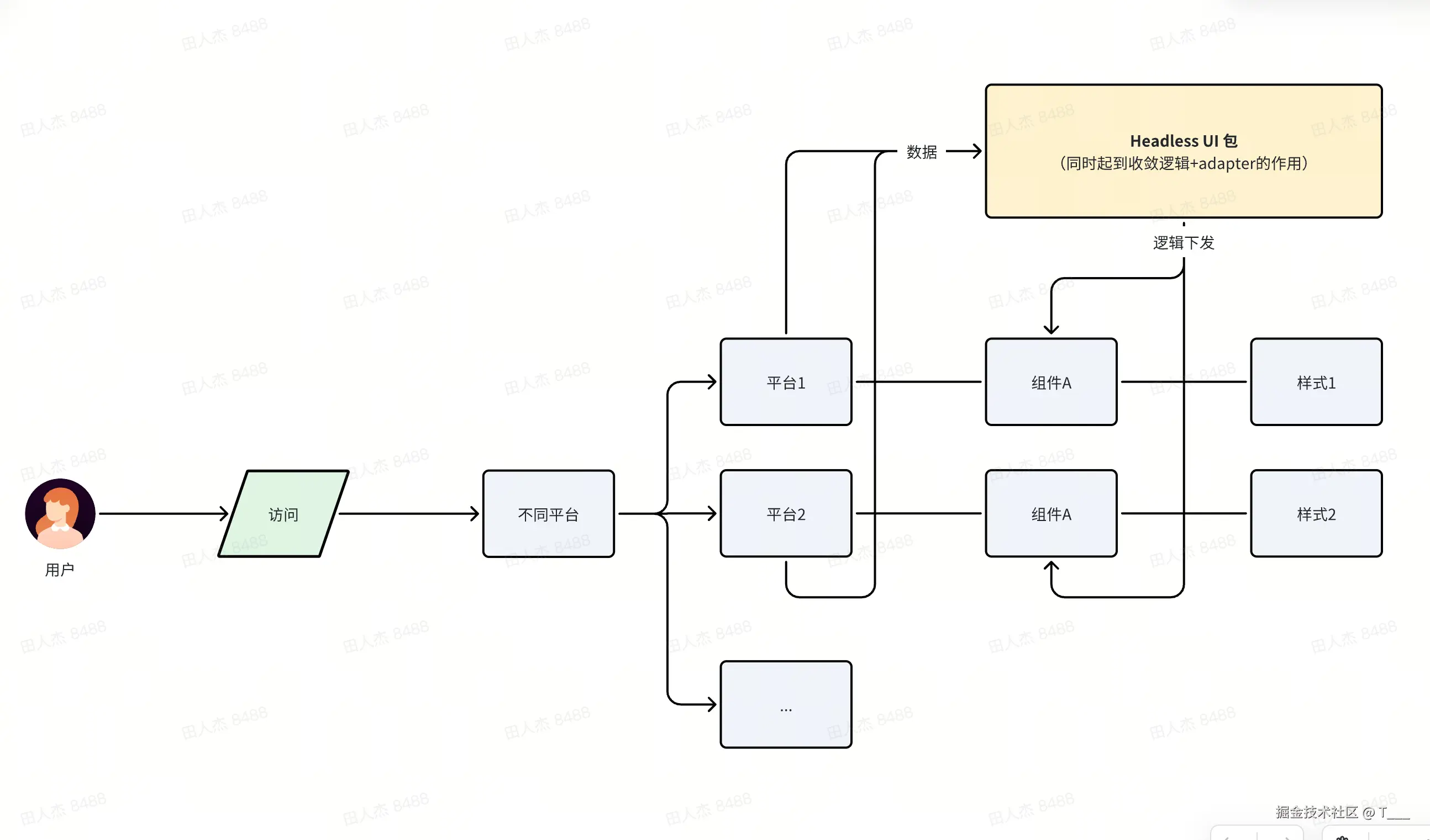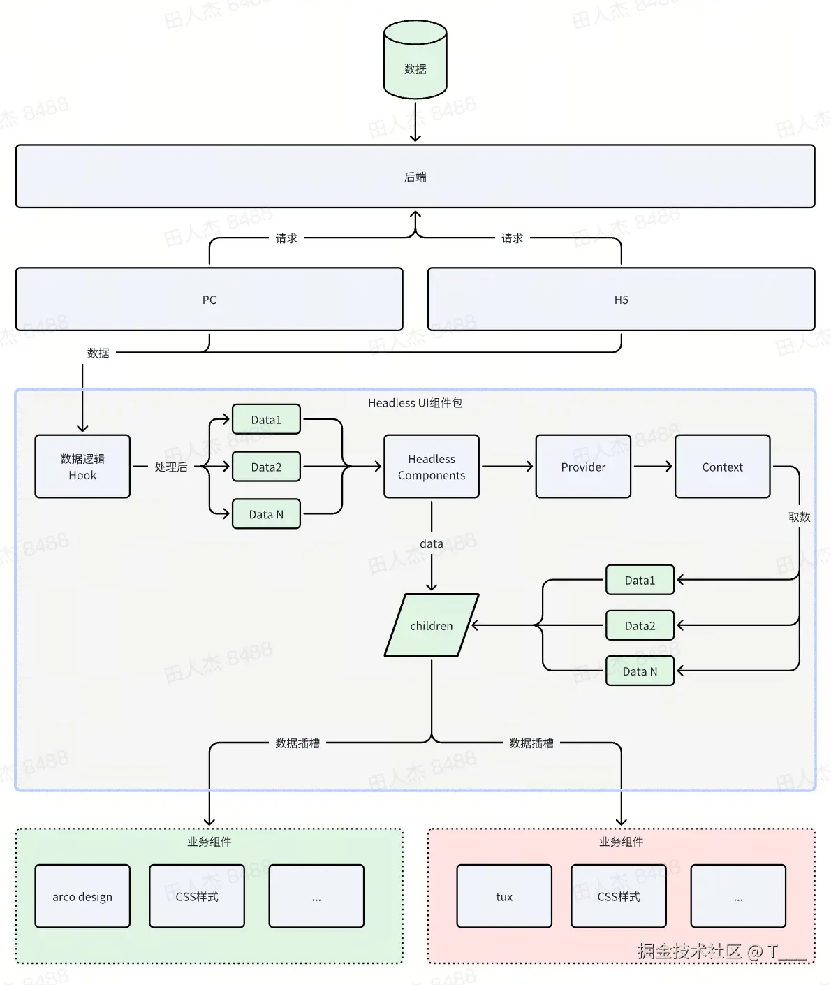 Headless UI 是一种设计思路,本质上就是分离视觉样式相关的代码,将交互逻辑、状态管理、用户交互独立出去作为原子化的可复用模块,实际可以根据业务场景灵活实现,并没有固定的模板