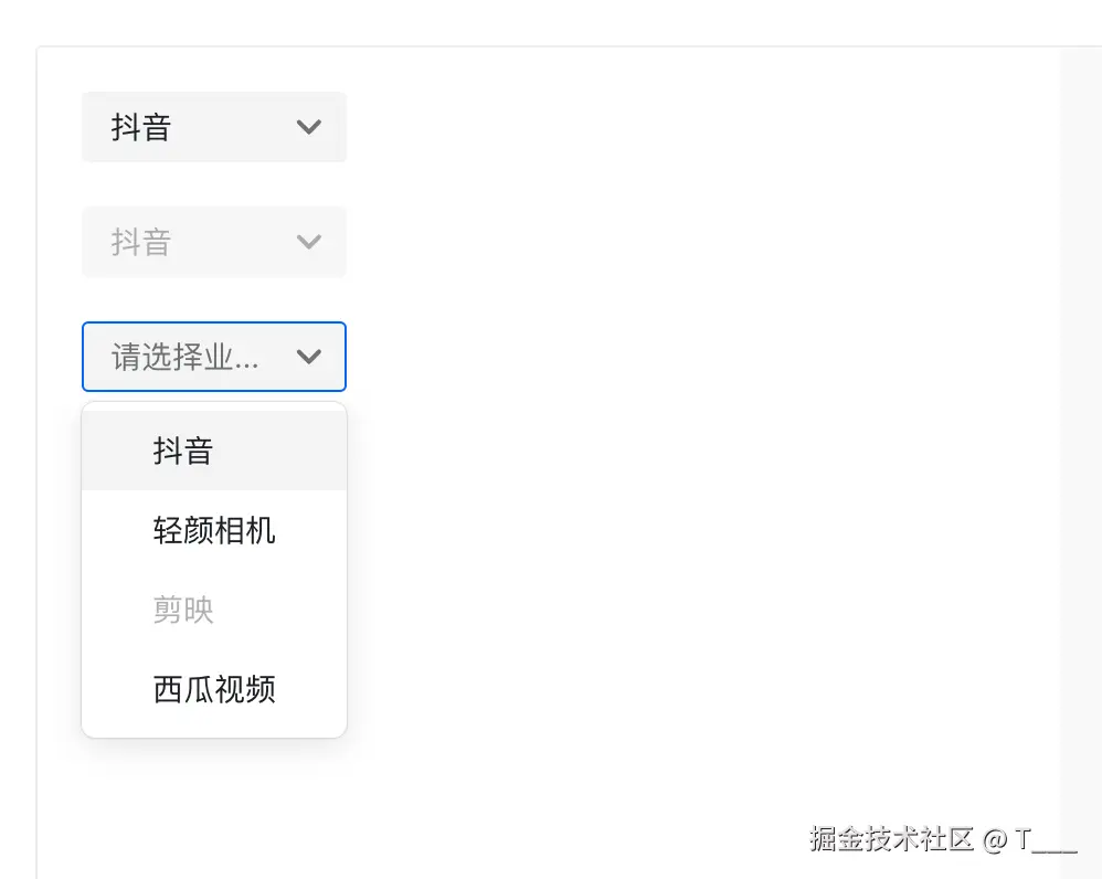 最普遍的应用场景就是大家目前使用的 UI 组件库, eg:Ant Design,Arco Design,Semi Design,从如下表格可以发现这几个组件库虽然交互逻辑基本是一样的,但是样式上差距却不小,也因此会导致系统设计风格受制于组件库,定制化困难