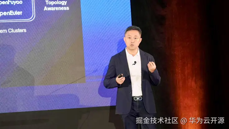 会上,华为首席开源联络官, CNCF 基金会董事任旭东带来 “Towards Clouds of AI Clusters” Keynote 主题演讲, 深度分享了AI原生时代的算力集群技术演进趋势,及华为在异构集群管理、云边协同AI、超大规模调度等领域的应用实践。