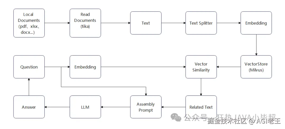 在 JAVA 体系下 Spring AI 针对RAG的实现,也类似 LangChain 做了很多的封装和支持,基本上做到使用较少的代码即可实现 RAG 的过程。