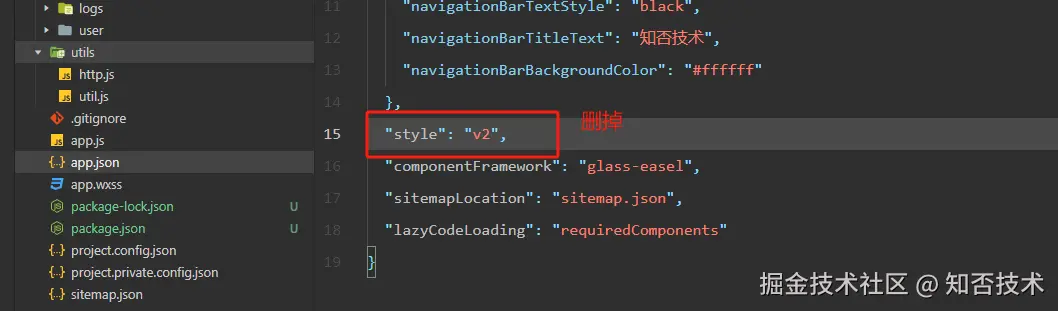 删除 app.json 文件中的 style:v2 属性,因为新版小程序组件加了很多样式,这个属性会导致部分组件样式混乱。