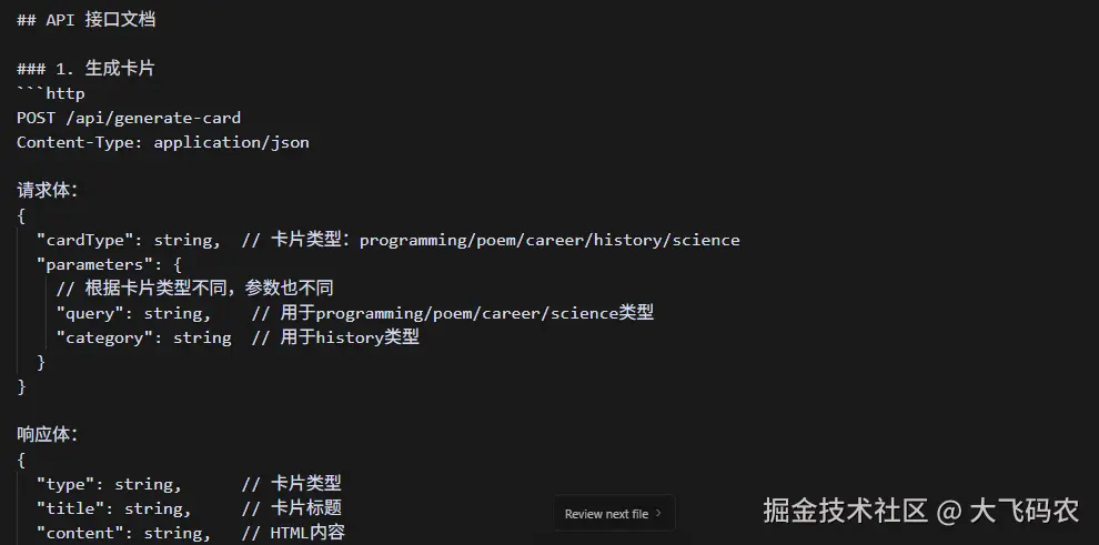 把我们所有的提示词,及API调用的示例,统统发给Cursor,让它帮我们打造一个可以生成HTML卡片的智能体,下面是我的生成示例,当然这个过程中也是需要不断的调试,有错误直接发给Cursor就能解决。有兴趣的朋友也可以体验一下Cursor1.0,据说修改问题非常强大,我还没来得及尝试,原因就不解释了,大家应该都懂得。