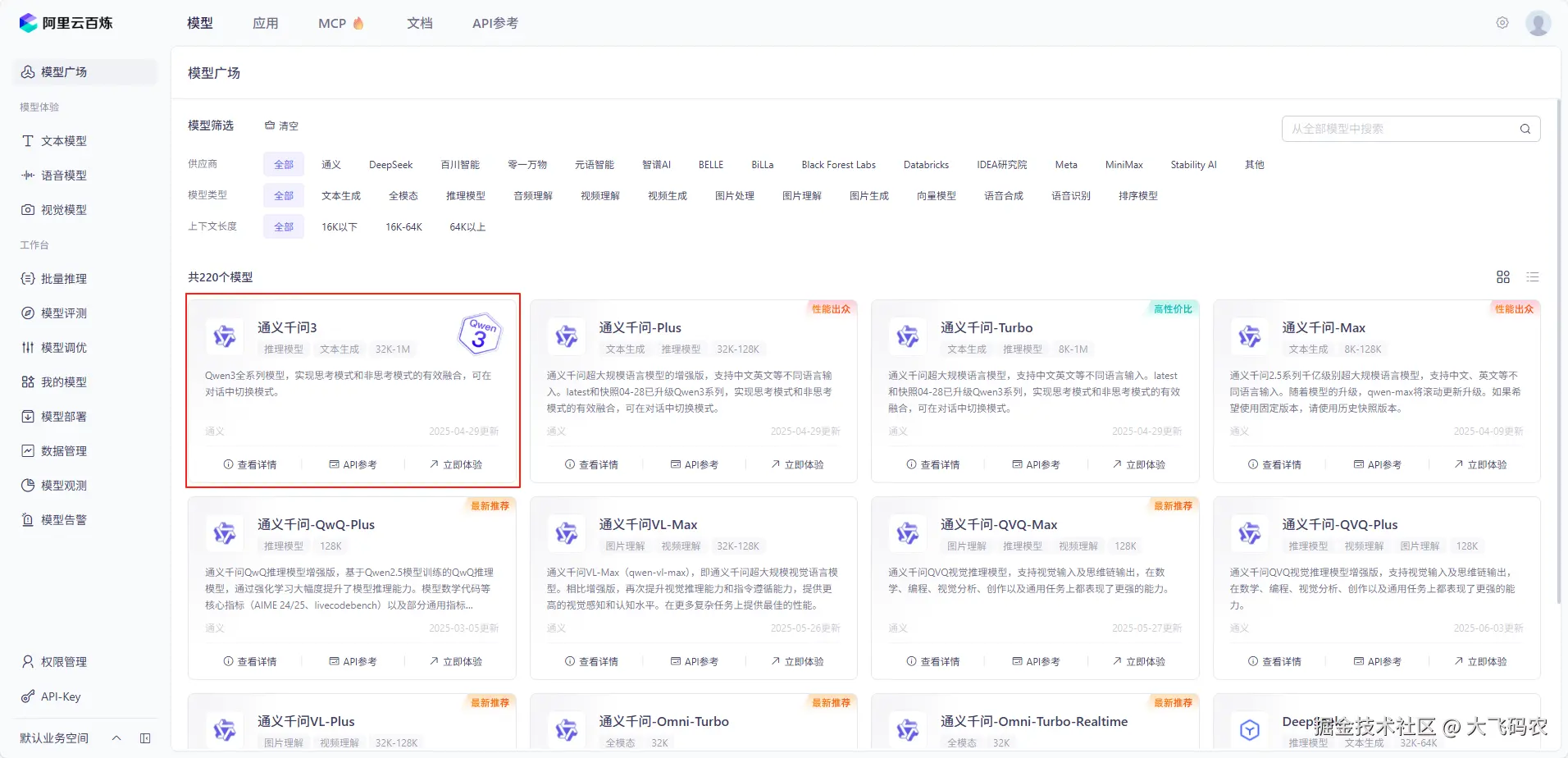 接下来,首先我们要找到我们所需要的模型,在模型广场我们选择千问3