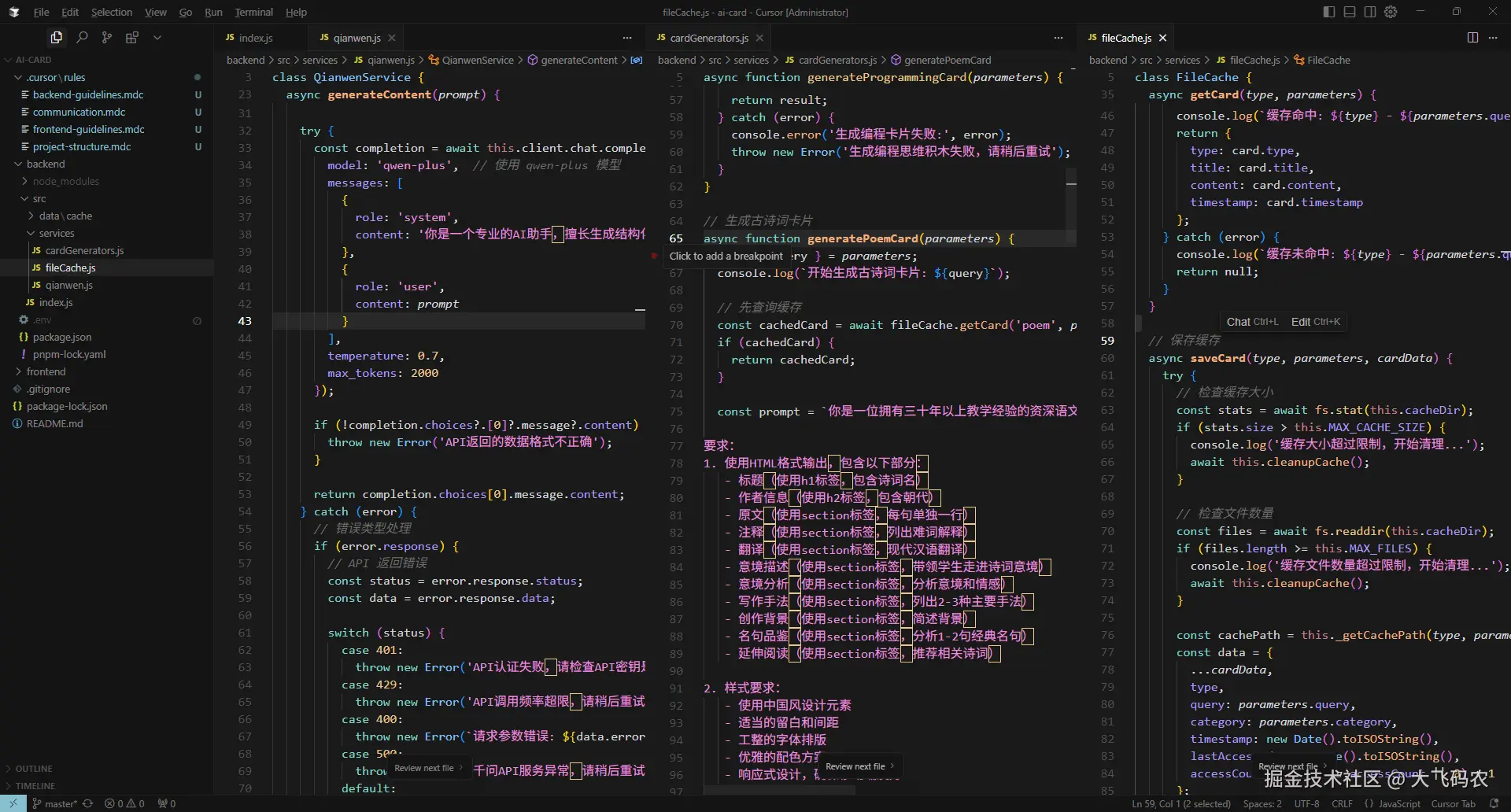 后端我只做了4个文件,主要增加了一个存储,已经生成过的卡片可以存储起来,避免消耗过多的Tokens。