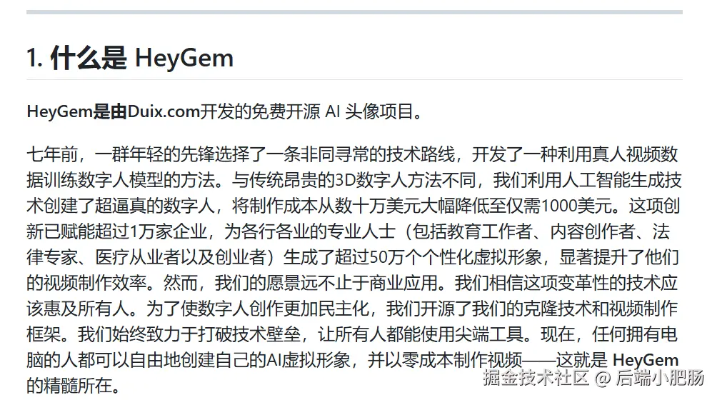 - 访问 Heygem仓库:github.com/duixcom/Dui…
