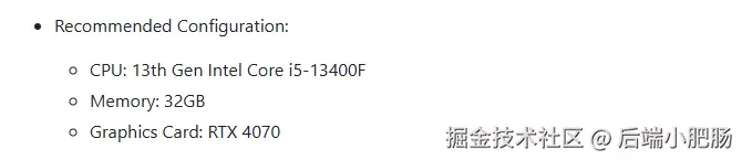 - 查看 Heygem配置要求: Heygem要求操作系统Windows 10 19042.1526 或更高版本。官方推荐安装Heygem的电脑的配置如下。下图给出了 CPU 、 内存 和显卡的需求,可以自行对照一下你的电脑是否符合,差的太多还是老实用云端数字人的工具就行: