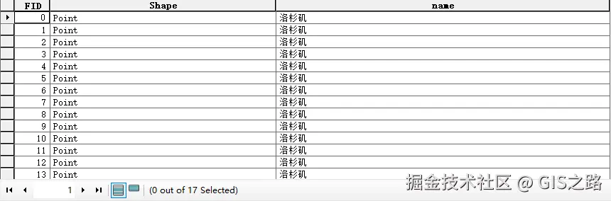转换完成后使用GIS软件ArcMap打开属性表结构如下。