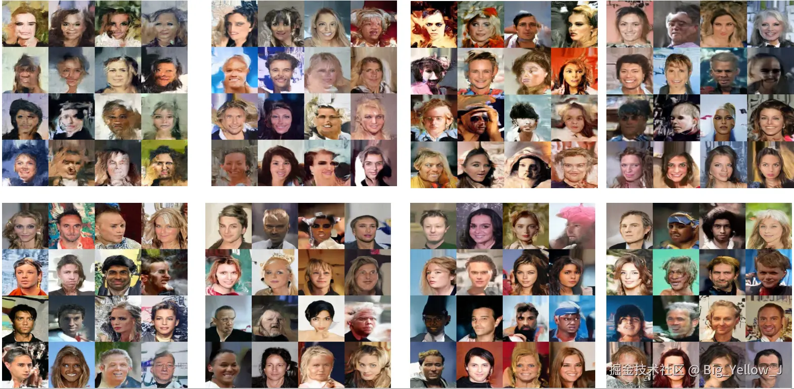 上面介绍了各类DF以及具体的代码操作,总的来说在DF训练过程中(从代码角度)基本上就是这个公式: 加噪过程得到/去噪过程通过通过去预测 噪声来优化模型的参数。于此同时训练过程中发现:扩散模型(如DDPM)确实倾向于先学习图像的低频信息(大致轮廓),再逐步学习高频信息(细节),这是由于模型的去噪过程和损失函数设计,因此扩散模型需要大量迭代(通常数千到数十万步)才能生成高质量图像,尤其在细节上需要长时间优化。比如下面为实际迭代过程中生成.