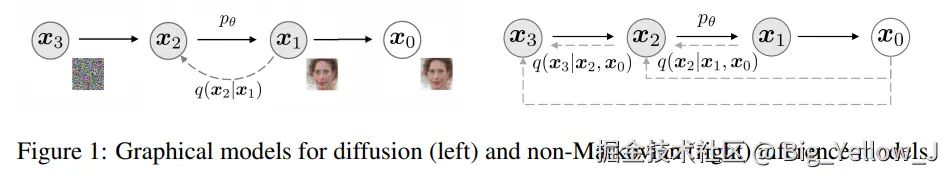 最开始在介绍DDPM中将图像的采样过程定义为马尔科夫链过程,而DDIM7则是相反直接定义为:非马尔科夫链过程