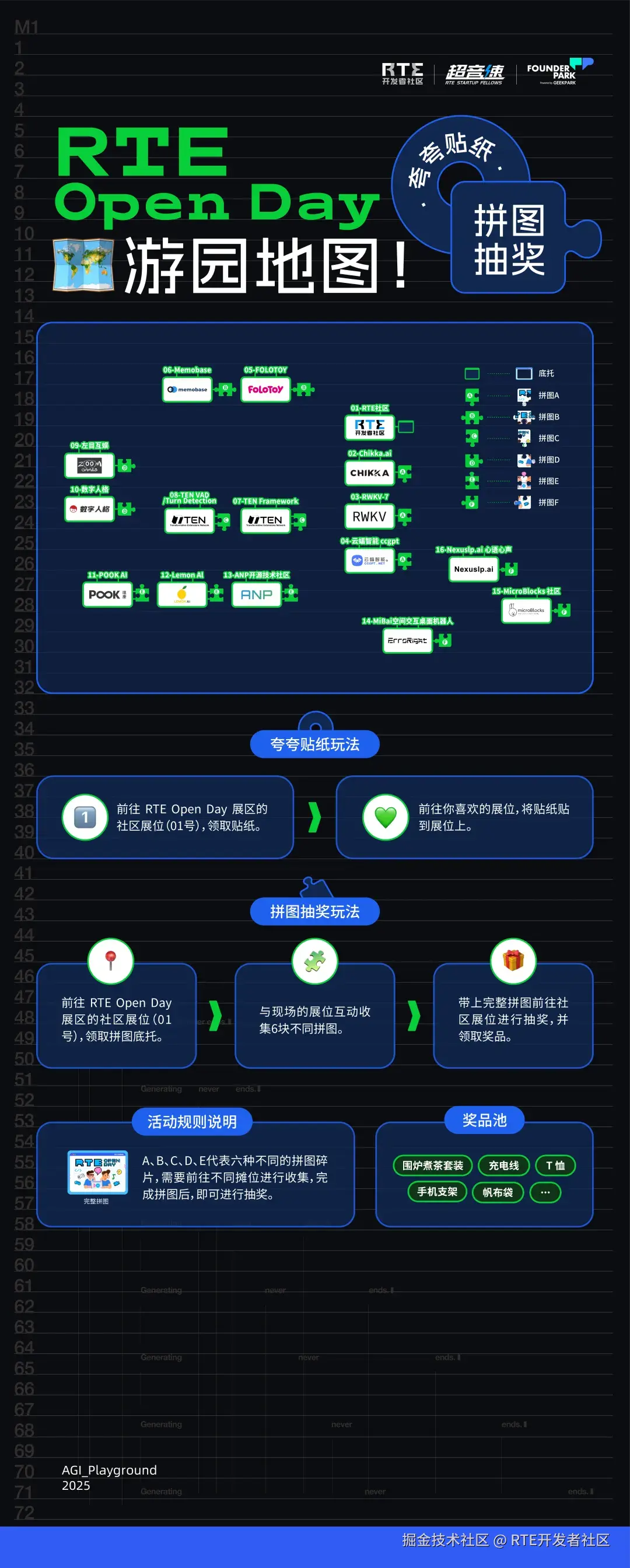 翻阅这篇指南,将 RTE Open Day 展区、AI Workshop、Dev Party 开发者聚会的精彩内容打包收下,更别忘了游园打卡,领取礼品🎁