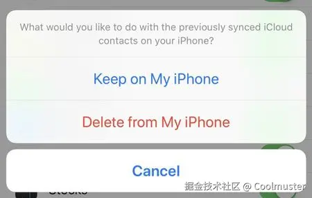 第 2 步。关闭“联系人”选项并选择“保留在我的 iPhone 上”。