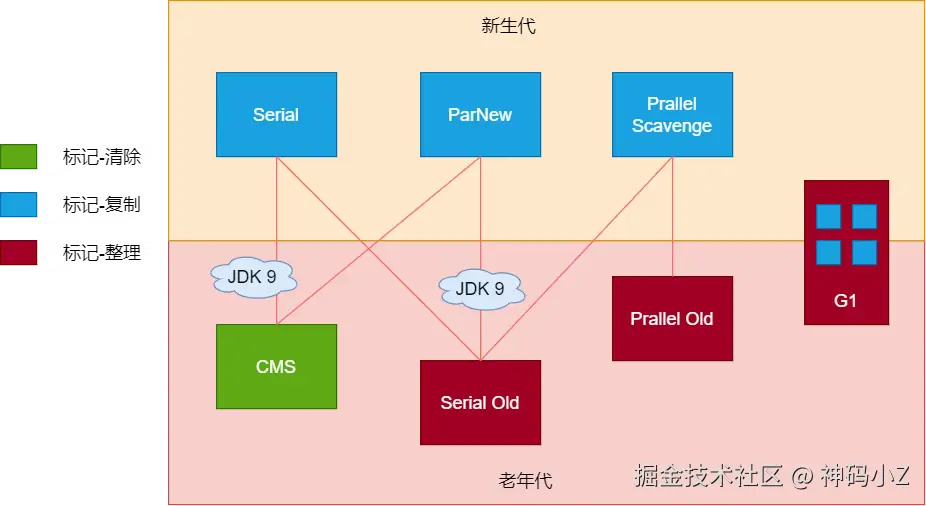 - 同时回收新生代和老年代