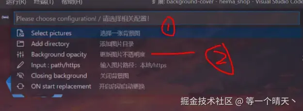 重新打开vscode之后右下角就有一个切换背景图的按钮,点击