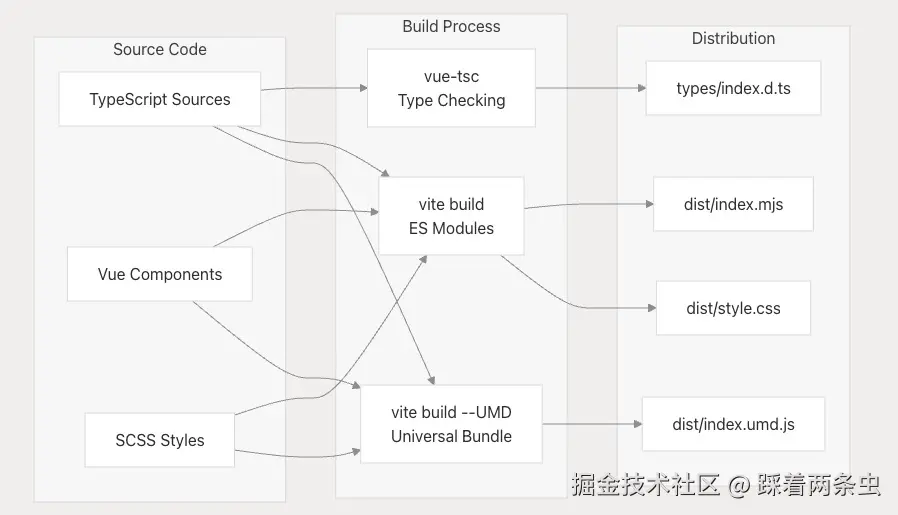 charts 包使用双重构建系统,该系统可同时生成 ES 模块和 UMD 捆绑包,从而确保 VTJ 生态系统内不同部署场景之间的兼容性。